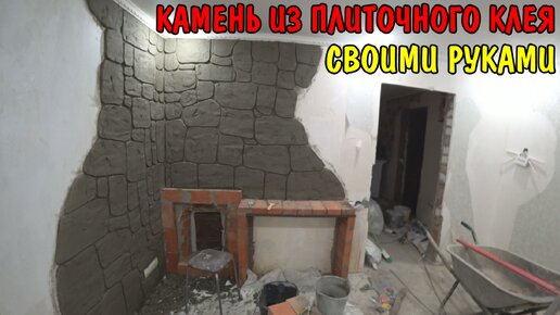 КАМЕНЬ ИЗ ПЛИТОЧНОГО КЛЕЯ / ДЕКОРАЦИЯ ПЕЧНОГО УГЛА В САУНЕ / НАТУРАЛЬНЫЙ КАМЕНЬ / РЕМОНТ В ДЕРЕВНЕ