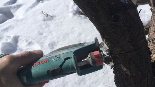Обрезка дерева сабельной пилой, обработка срезов, вновь находка)