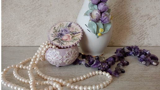Маленькая винтажная шкатулка для женских мелочей. Декупаж. Кракелюр.