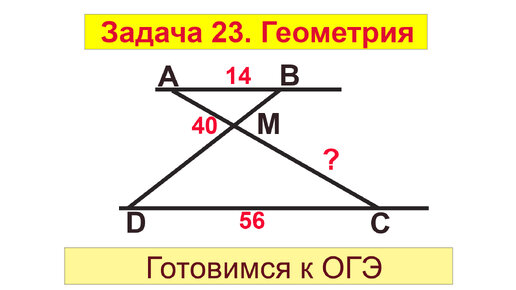 Отрезки AB и DC лежат на параллельных прямых, а отрезки AC и BD пересекаются в точке M. Задача 23 из ОГЭ по математике