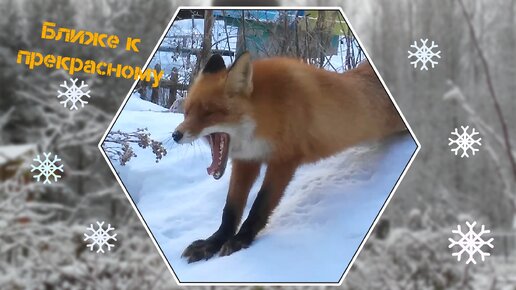 Мартовский лисёнок. Потягивается, зевает, отдыхает.
