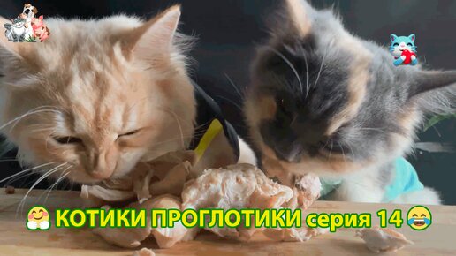 Котики проглотики (серия 14) Котята Ася и Айс, куриная ножка и сосиски поедаются с аппетитом