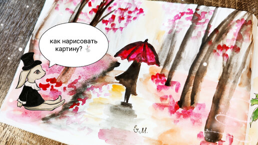 Как нарисовать картину 3 класс? Рисуем девушку идущую под дождём с красным зонтом.