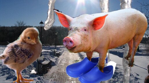 Худшие цыплята в моей жизни / свинья хочет голоши / сохранила зелень для кур и свиней до весны.
