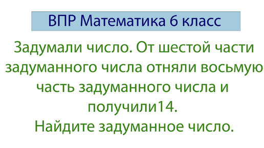 Задумали число. От шестой части задуманного числа отняли восьмую часть задуманного числа и получили 14. Найдите задуманное число.
