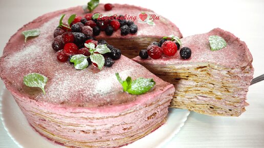 Блинный торт с ягодным кремом "Ягодный пломбир" | Торт без духовки