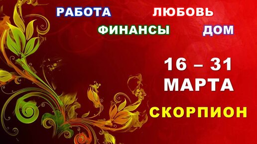 ♏ СКОРПИОН. ❤️ С 16 по 31 МАРТА 2024 г. 🌿 Главные сферы жизни. 💫 Таро-прогноз