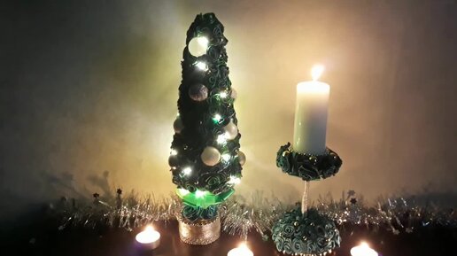 Елка и подсвечник из атласных лент, Мастер класс!