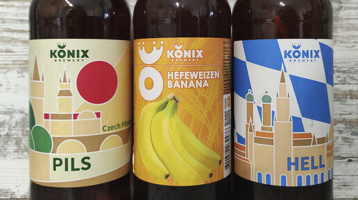 Пью пиво от пивоварни Konix \ Обзор на пиво Konix Hell, Konix Pils, Konix HefeWeizen Banana