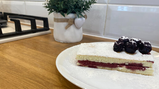 Бисквитное пирожное с вишневым вареньем. Самое простое и вкусное домашнее пирожное.