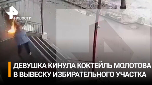 В Санкт-Петербурге девушка кинула коктейль Молотова в вывеску избирательного участка: возгорание быстро потушили, пострадавших нет