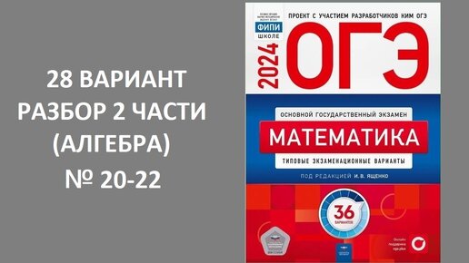 28 вариант ОГЭ 2024 по математике из сборника Ященко 36 вариантов. Разбор 2 части (алгебра). № 20-22. Готовимся вместе к ОГЭ 2024!!!