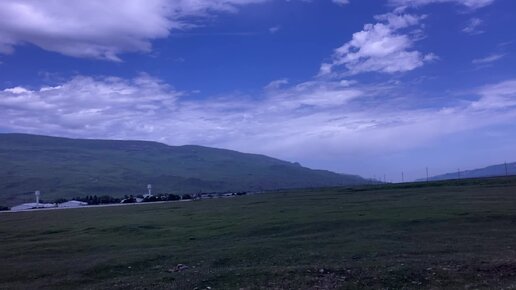 Карачаево-Черкессия из окна автомобиля. Коровы. Горы. Луга. Поля.