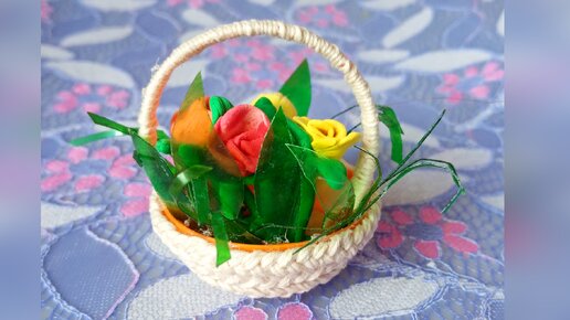 Как сделать корзинку с розами из легкого пластилина и крышечки. Мастер-класс