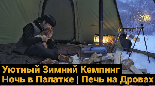 Зимний Кемпинг в Палатке с Собакой | Печь на Дровах и Рамен