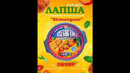 ЛАПША китайская САМОЗАВАРИВАЮЩАЯСЯ с говяжьими ФРИКАДЕЛЬКАМИ от производителя "SHIMANGUAN". ОБЗОР.