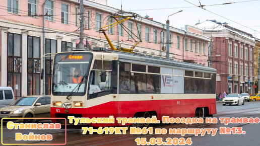 Тульский трамвай. Поездка на трамвае 71-619КТ №61 по маршруту №13. 15.03.2024