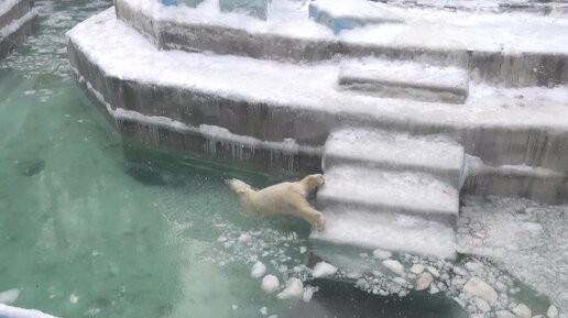 Стрелка погрузилась в воду первой, а Белка прыгнула в воду с берега. 15.03.2024