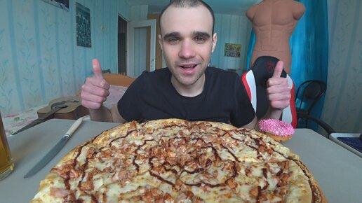 МУКБАНГ ПИЦЦА БАРБЕКЮ / PIZZA BBQ BARBECUE / ПОНЧИК НА ДЕСЕРТ / DONUT / EATING Mukbang ASMR АСМР