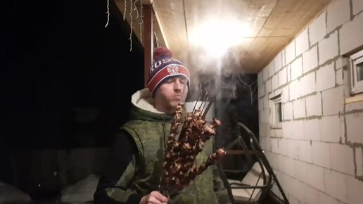 У НАС ВЕЧЕР, ЮРА ЖАРИТ ШАШЛЫК. УЖИНАЕМ.