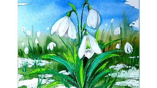 💚🩵💚Подснежники, как нарисовать масляной пастелью и акварелью.