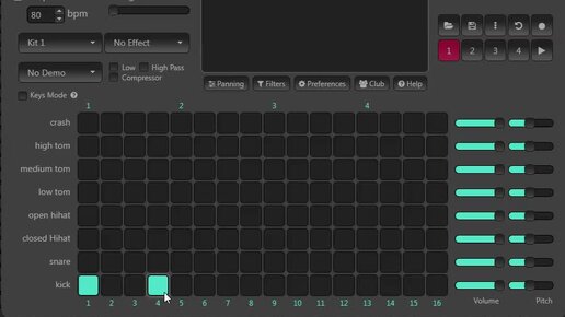 Создание ударного паттерна в бесплатной онлайн Ритм-машине DrumBit