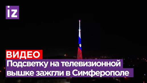 В Симферополе зажгли подсветку на телевизионной вышке в честь 10-летия воссоединения Крыма с РФ