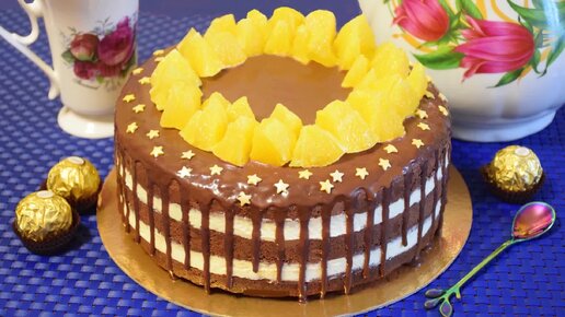 Шоколадно-апельсиновый торт: воздушный бисквит с апельсиновым сиропом и нежный апельсиновый крем