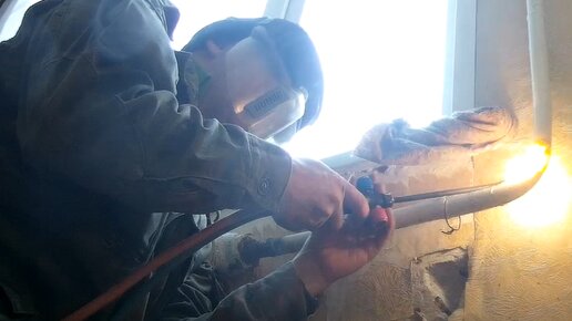 Газосварка ЖКХ. Замена отвода на стояке отопления Gas welding housing and communal services