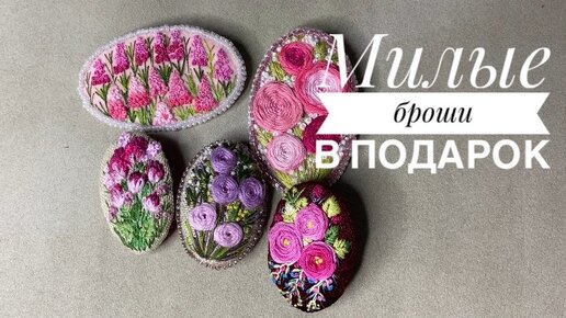 Милые броши в подарок. Вышивка Мулине.