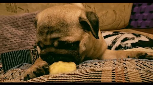 Маленький мопсик Бадди впервые пробует фрукты
