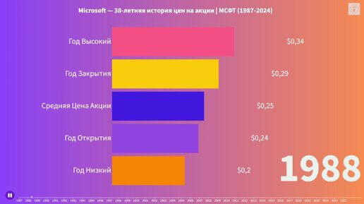 Microsoft — 38-летняя история цен на акции | МСФТ (1987-2024) #статистика #топ16статистика #статистикамикрософт