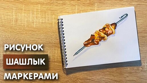Как нарисовать шашлык карандашом и скетч маркерами | Рисунок для детей, поэтапно и легко