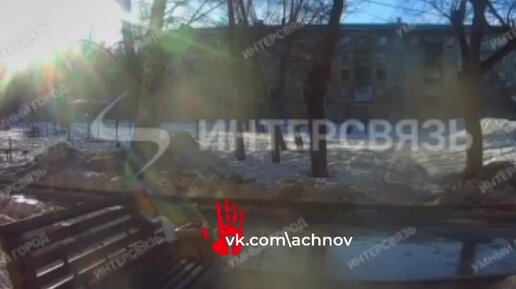 Могло убить человека! В Челябинске на улице Барбюса с крыши рухнул снег