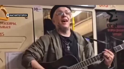 Парень из Магнитогорска поет под гитару для пассажиров в трамвае