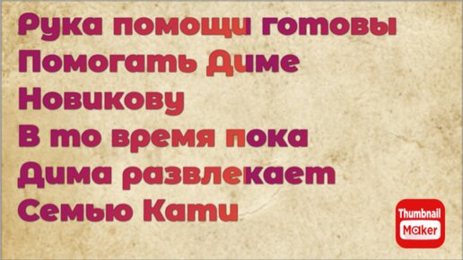 Всё в кучу. Рука помощи готовы помогать Диме Новикову,в то время пока Дима развлекает семью Кати. Двойные стандарты Димы