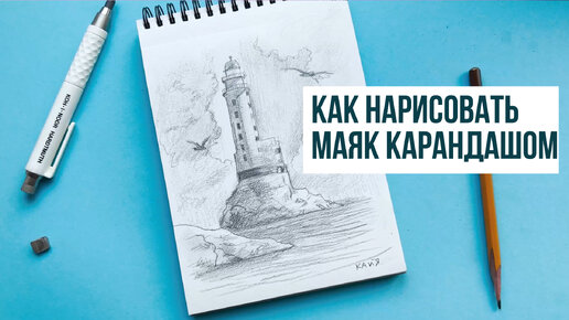 КАК НАРИСОВАТЬ ПЕЙЗАЖ С МАЯКОМ ПРОСТЫМ КАРАНДАШОМ. Рисунок для начинающих