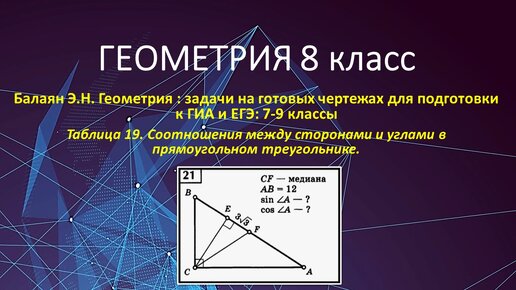 Геометрия 8 класс. Соотношения между сторонами и углами в прямоугольном треугольнике в задаче № 21 на готовых чертежах.