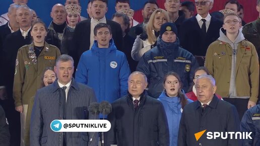 Путин, Харитонов, Даванков и Слуцкий исполнили гимн вместе с участниками концерта в честь 10-летия воссоединения с Крымом