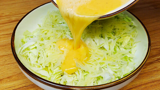 Теперь это любимый завтрак моего сына. Просто залила яйцо в капусту.