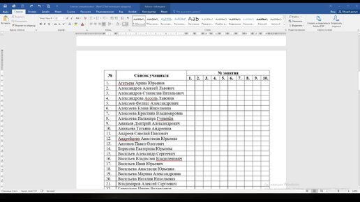 Таблицы в Microsoft Word: создаем список посещаемости занятий