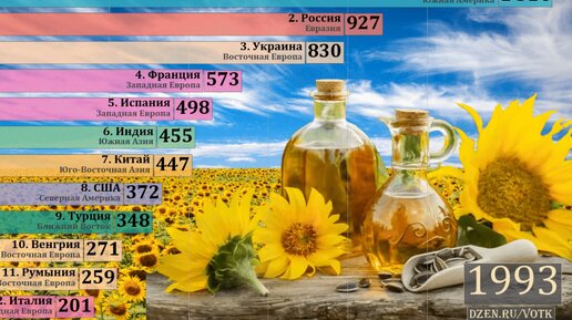 ТОП стран - крупнейших производителей подсолнечного масла с 1961 по 2023 год включительно