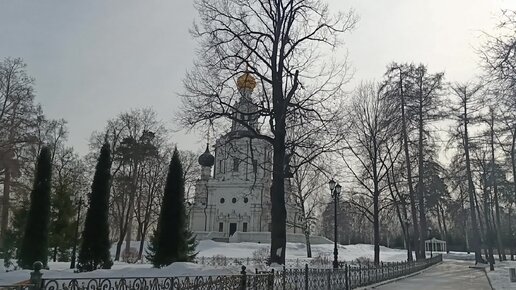 Москва, замечательный день ранней весны. Доступная часть усадьбы "Троице-Лыково" и храм Успения Пресвятой Богородицы, конца XIX века.
