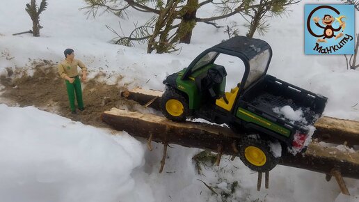 Дети и Машина. Играем в снегу машинками Брудер, строим мост. Манкиту