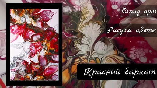 Флюид арт шедевральные цветы сеточка Красный бархат