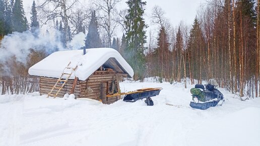 УСПЕЛ ДО ТЕМНОТЫ В ИЗБУШКЕ ПОСТАВИТЬ ОКНО / ТЕПЕРЬ ДРУГОЕ ДЕЛО / ГОТОВИМСЯ К НОЧЛЕГУ. ЧАСТЬ ВТОРАЯ. ЖИЗНЬ В ЛЕСУ ЗИМОЙ.
