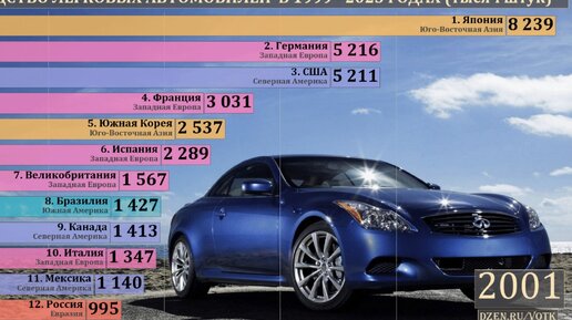 ТОП стран - крупнейших производителей автомобилей с 1999 года по 2023 год включительно