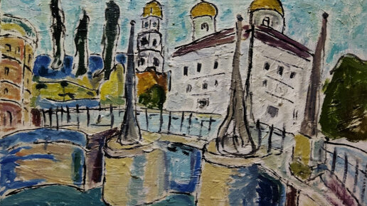 ЮДИНЦЕВА НАТАЛЬЯ. ПИТЕР. ПЕЙЗАЖ С МОСТОМ. 40 х 50 х.м. 2024 г.