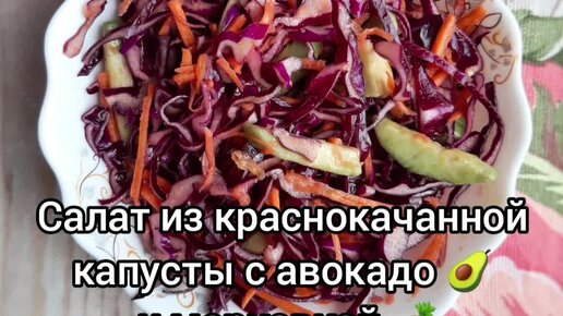 Салат из краснокочанной капусты с авокадо и морковкой. Постное меню