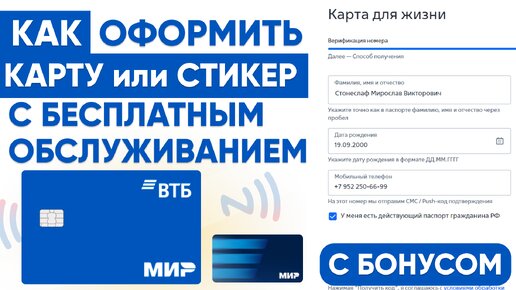 ДЕБЕТОВАЯ КАРТА или СТИКЕР ВТБ - КАК ОФОРМИТЬ С БЕСПЛАТНЫМ ТАРИФОМ и БОНУСОМ
